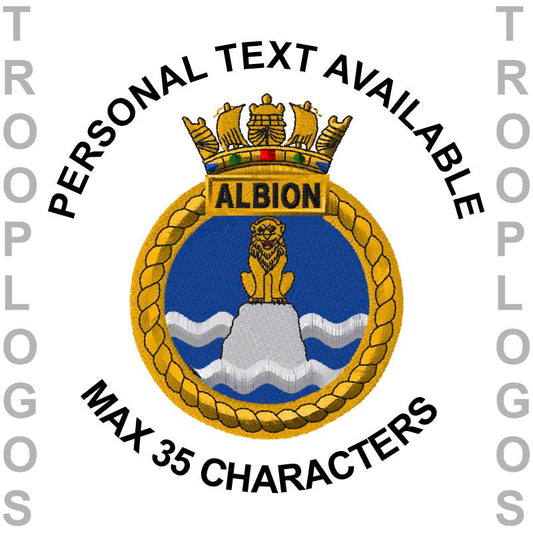 Official MOD Licensed Royal Navy Assault Ship Clothing. HMS Albion, HMS Bulwark, HMS Ocean, HMS Fearless, HMS Intrepid. If you require a large bulk order of more than 10 garments, then please email your full order details to Troop Logos, and a discount will be offered.